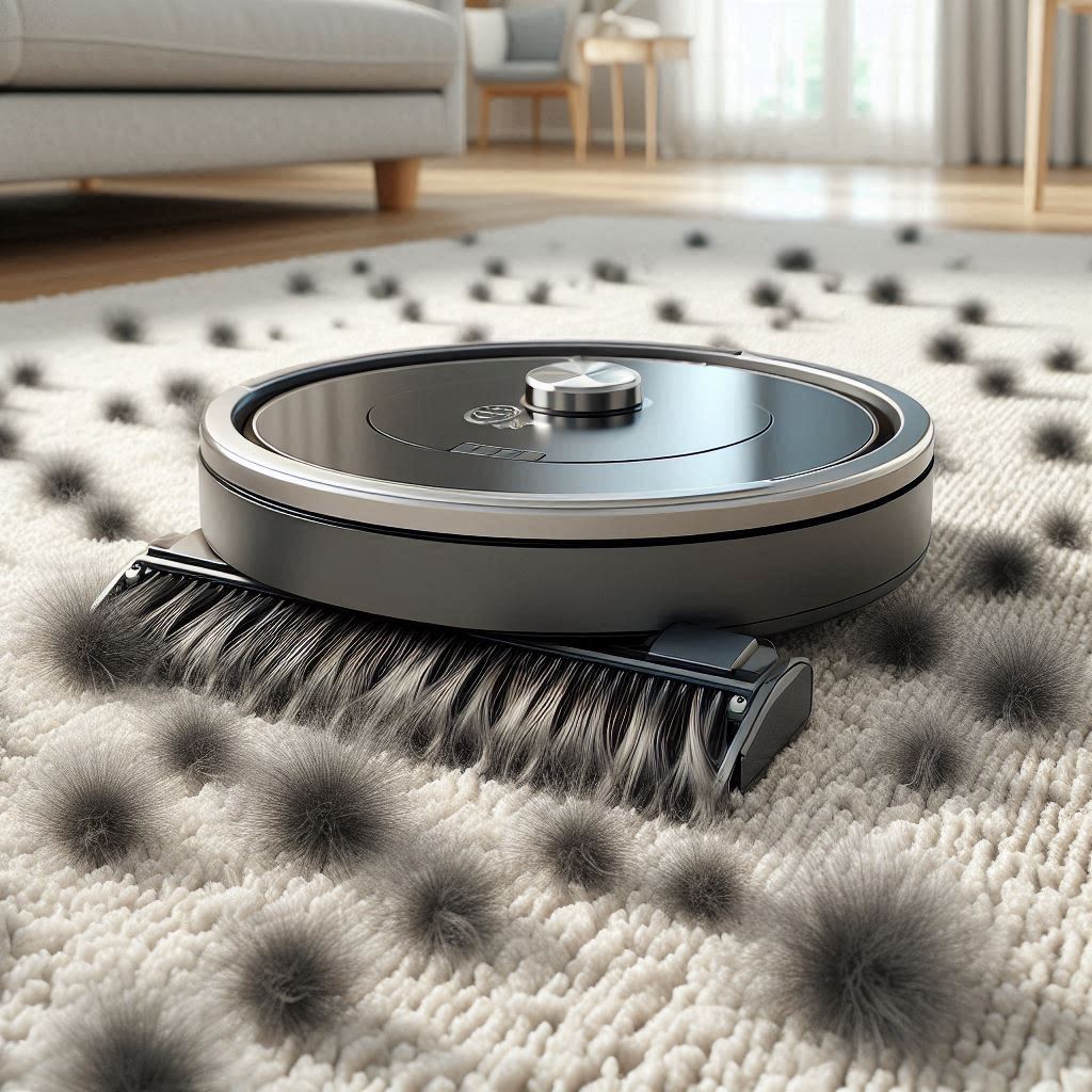 Dense carpets create resistance against robot wheels and brushes. Pet hair gets trapped in fibers, making it harder for robots to lift and pull into the dust bin.
